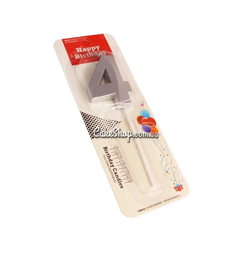 Цена на Тортовая свеча цифра серебро - 4 равна 47 грн.