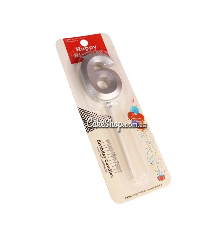 Цена на Тортовая свеча цифра серебро - 6 равна 47 грн.