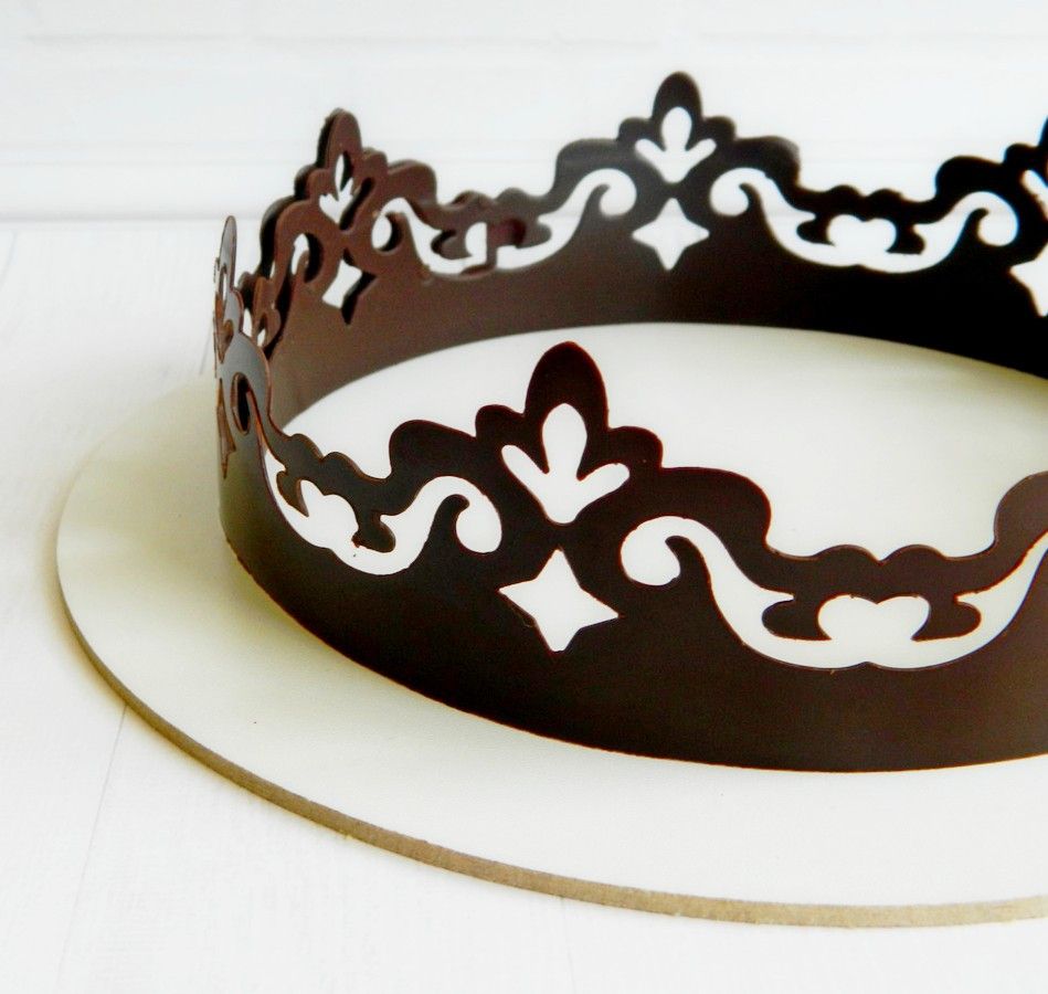 Гибкий трафарет формирует декор для украшения борта торта по всей окружности.