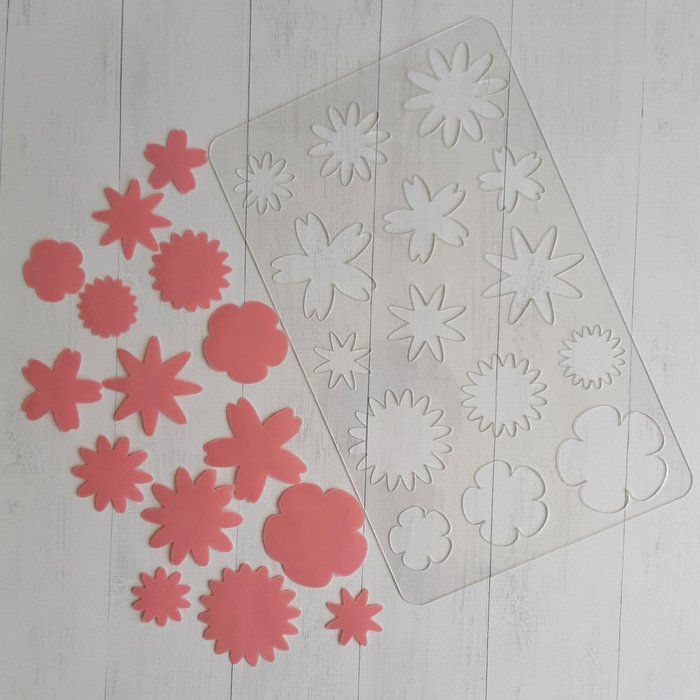 Трафарет «Цветы 1» содержит набор из листьев различного размера и дизайна.
