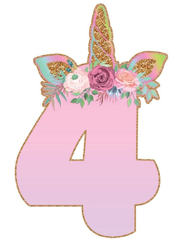 Цена на Вафельная картинка Цифра 4 Единорожка равна 50 грн.