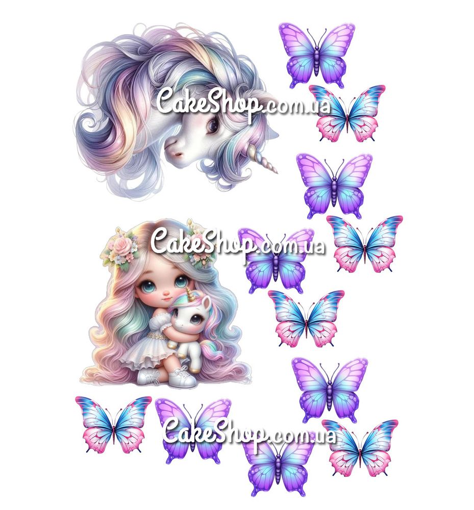 Цена на Вафельная картинка Девочка с единорогом равна 50 грн.
