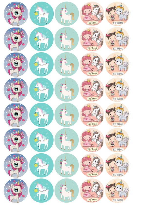 Цена на Вафельная картинка для капкейков Единорожки 4 равна 50 грн.