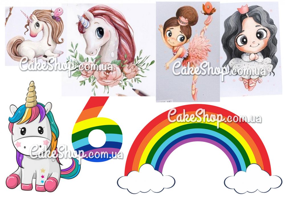 Цена на Вафельная картинка Единорожки 6 равна 50 грн.