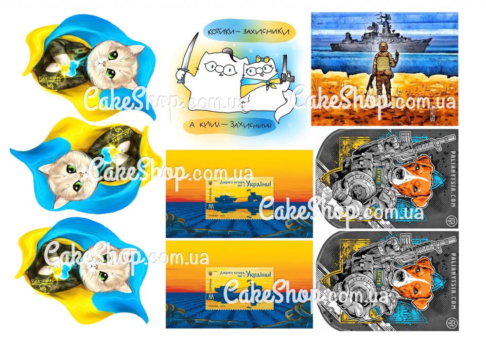 Цена на Вафельная картинка Украина, Патрон и котики равна 50 грн.