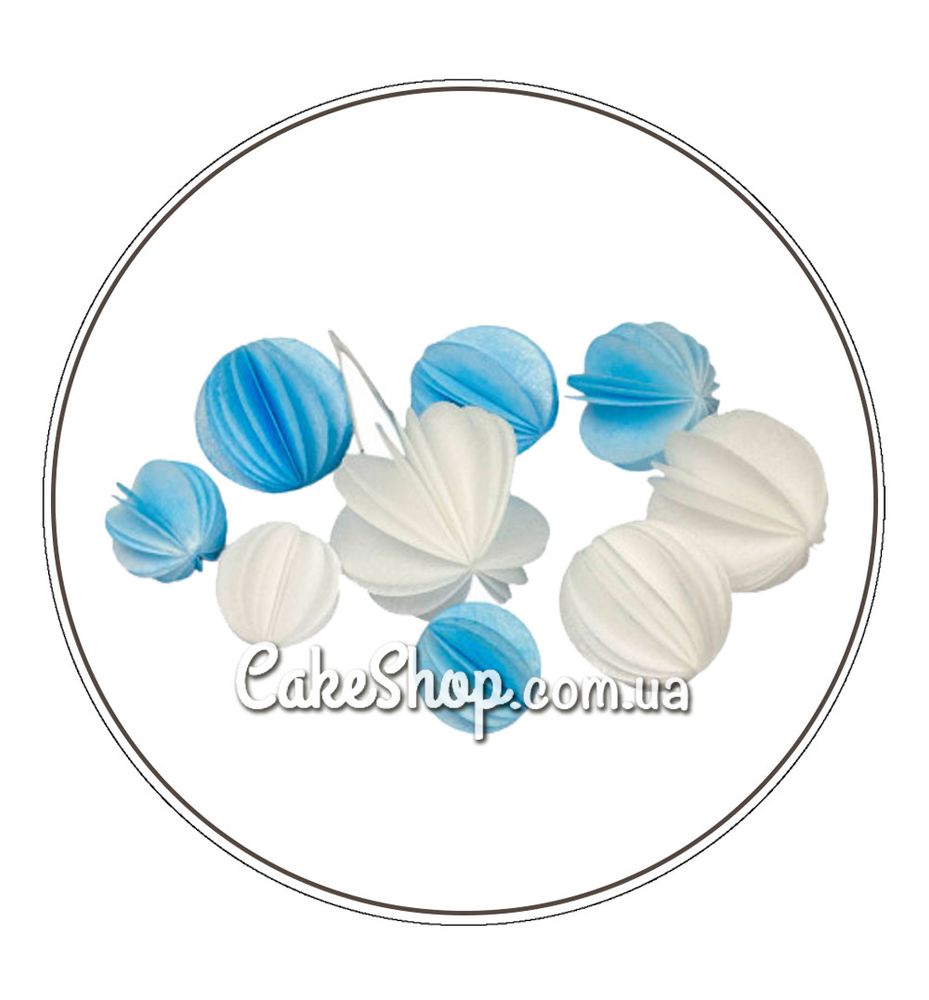 Шары из вафельной бумаги белые, голубые .
