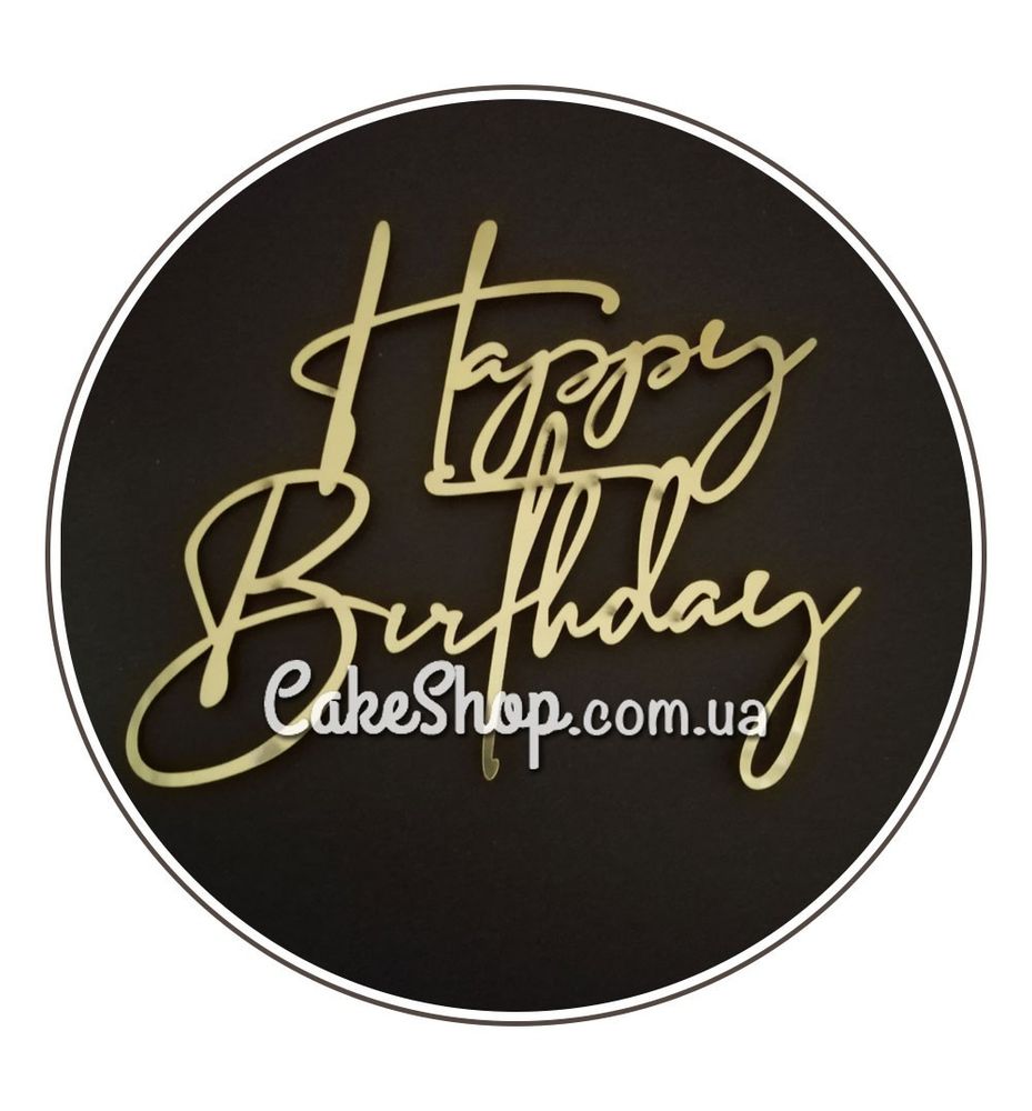 Ціна на Акриловий топпер DZ бічний напис Happy Birthday №1 золото дорівнює 80 грн.