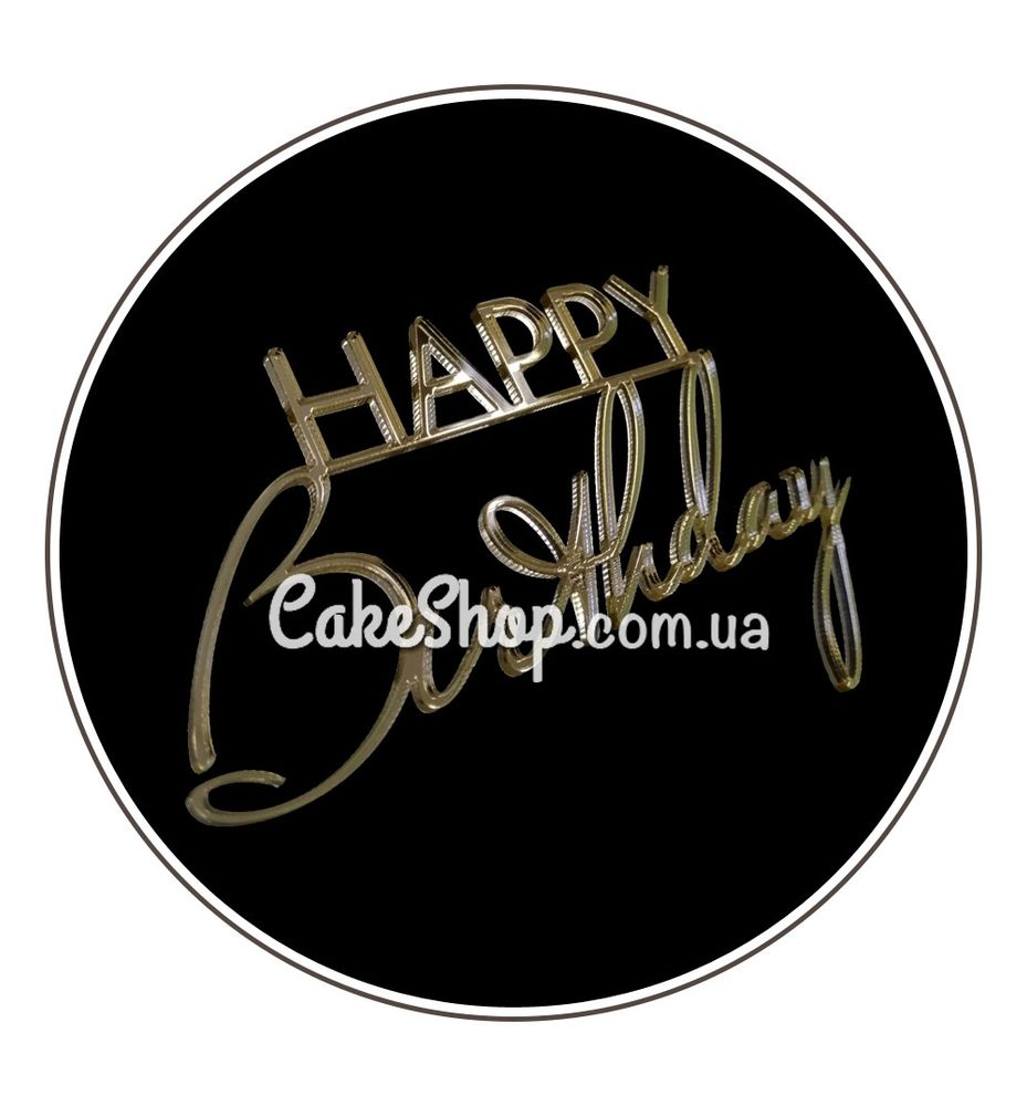 Акриловий топпер DZ бічний напис Happy Birthday №2 золото