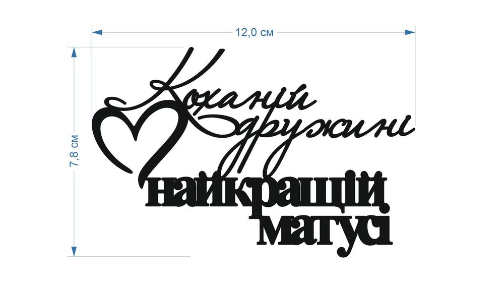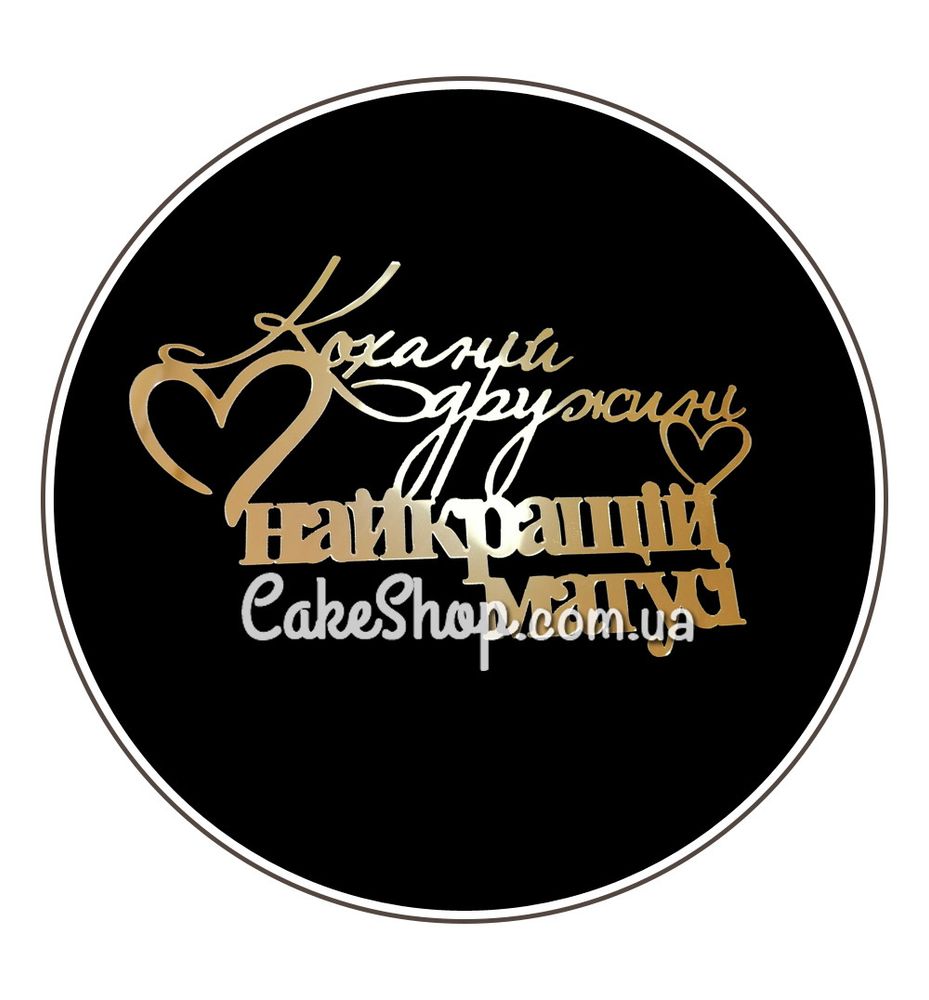 Ціна на Дзеркальний топпер DZ бічний напис Коханій дружині, найкращій матусі золото дорівнює 65 грн.