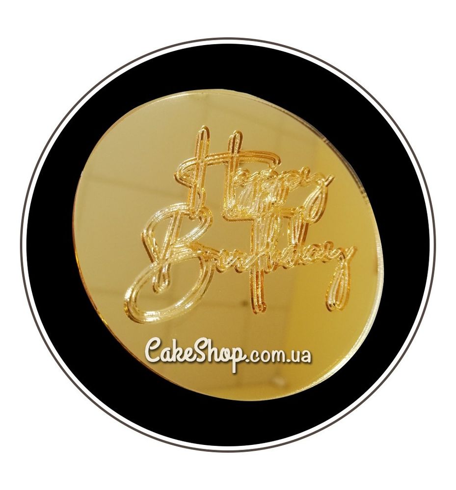 Акриловий топпер DZ медальйон Happy Birthday 7 см золото