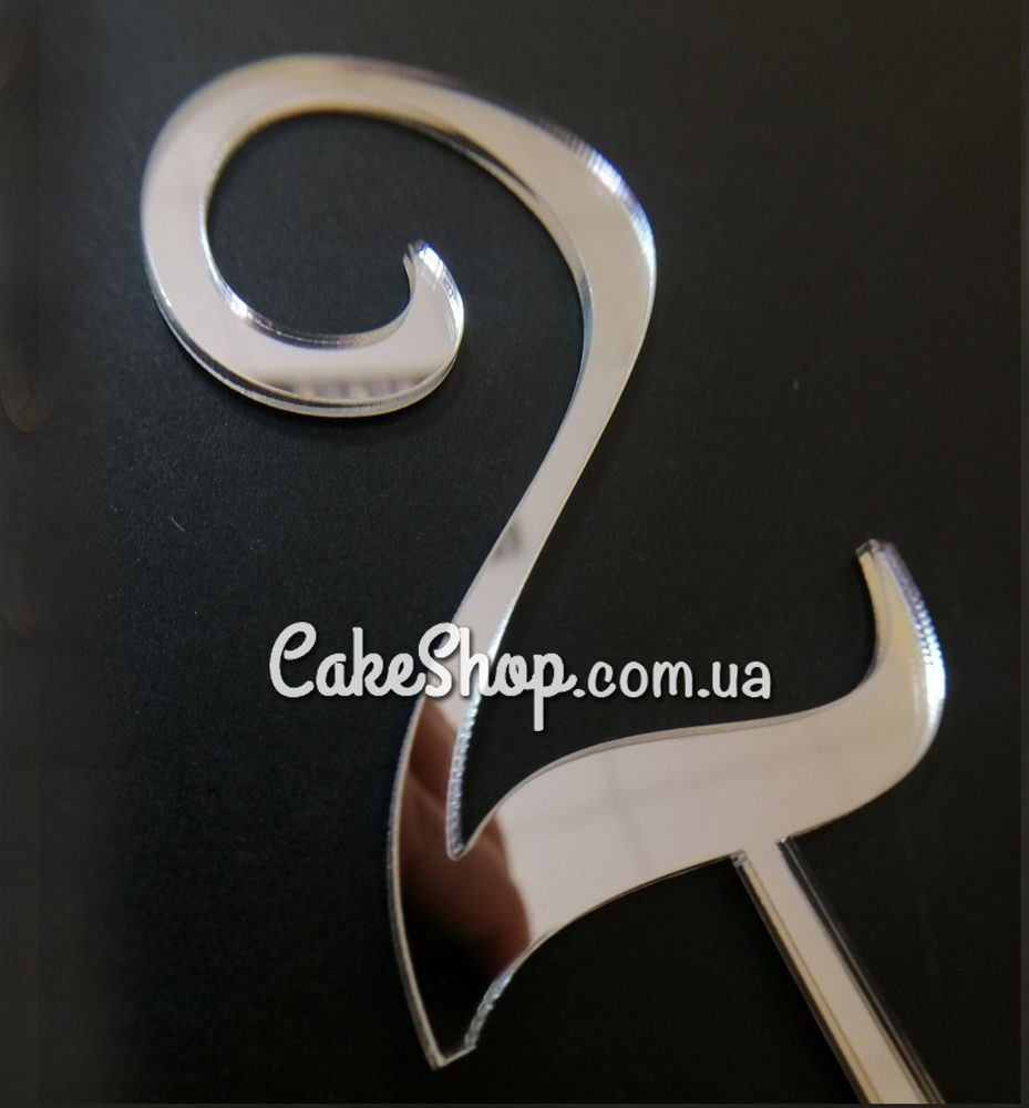 Акриловий топпер DZ Цифра 2 срібло