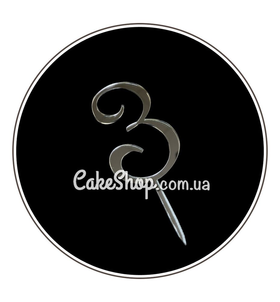 Акриловий топпер DZ Цифра 3 срібло