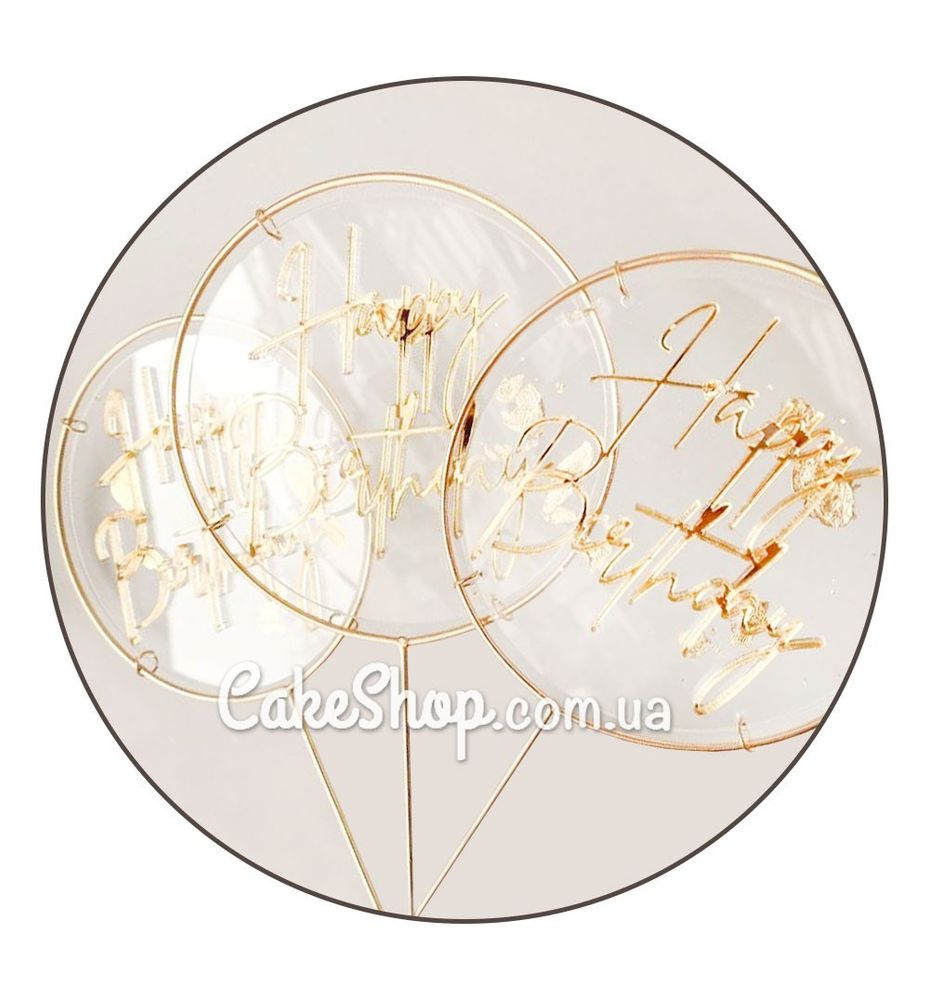 Акриловий топпер VA кільце Happy Birthday золото