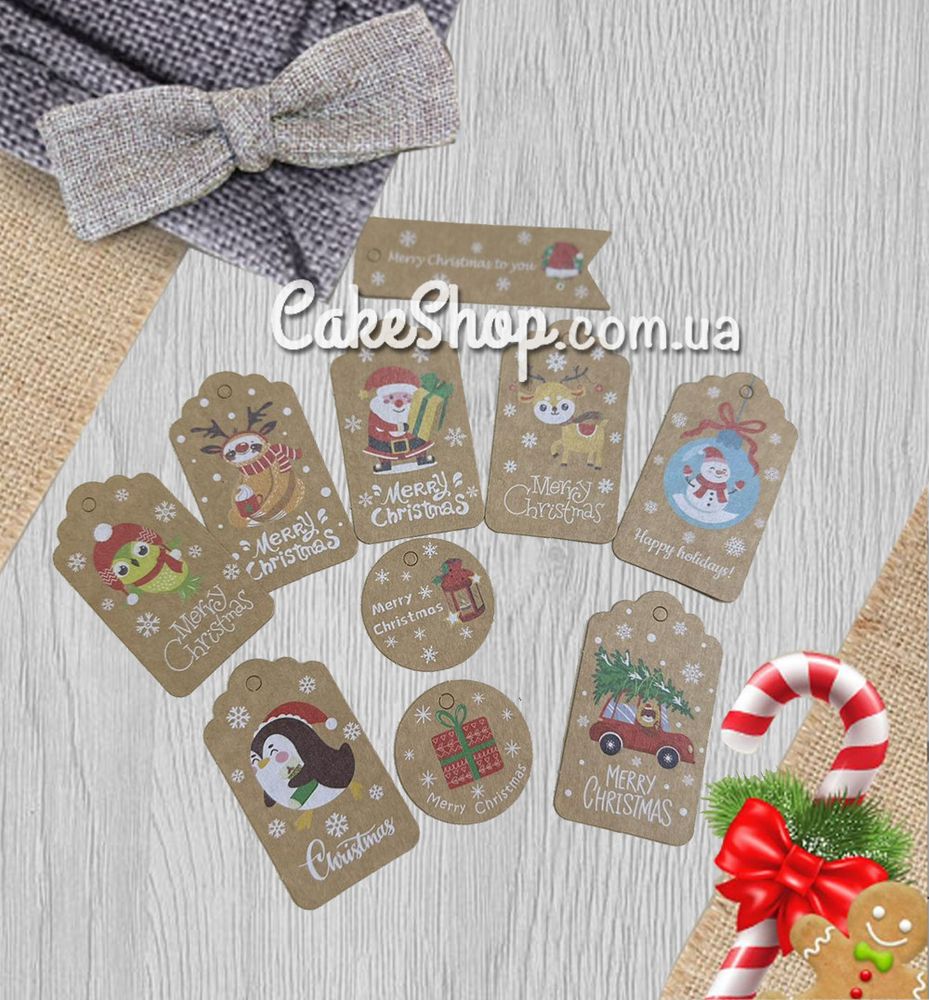 Ціна на Бірка паперова крафтова Новорічний мікс, 10 шт дорівнює 45 грн.