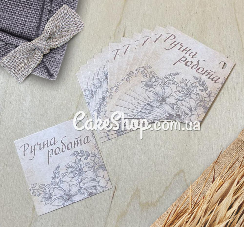 Бірка паперова Ручна робота крафт 5х5 см, 10 шт