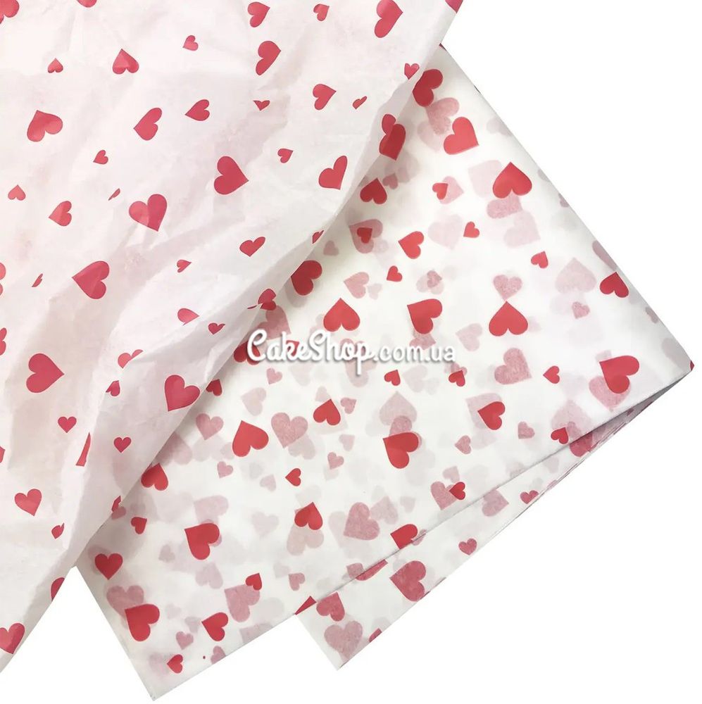 Папір тішью сердечка червоні, 5 аркушів