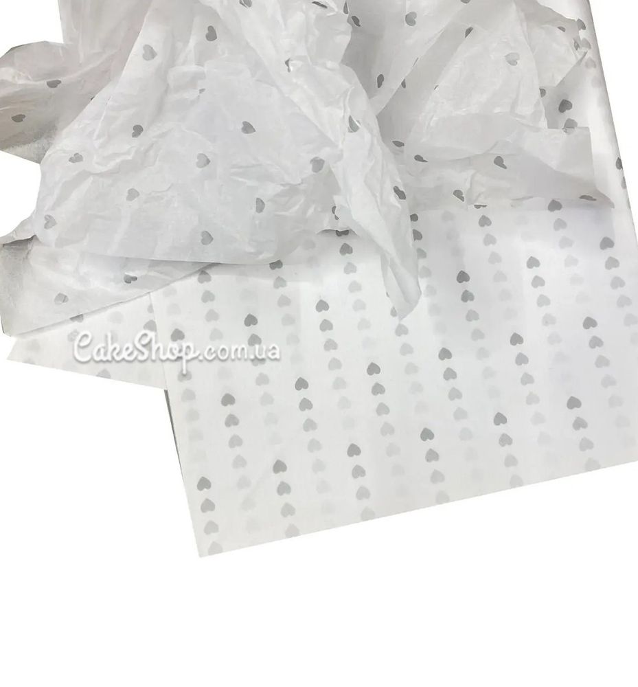 Папір тішью принт Сердечка срібло, 5 аркушів