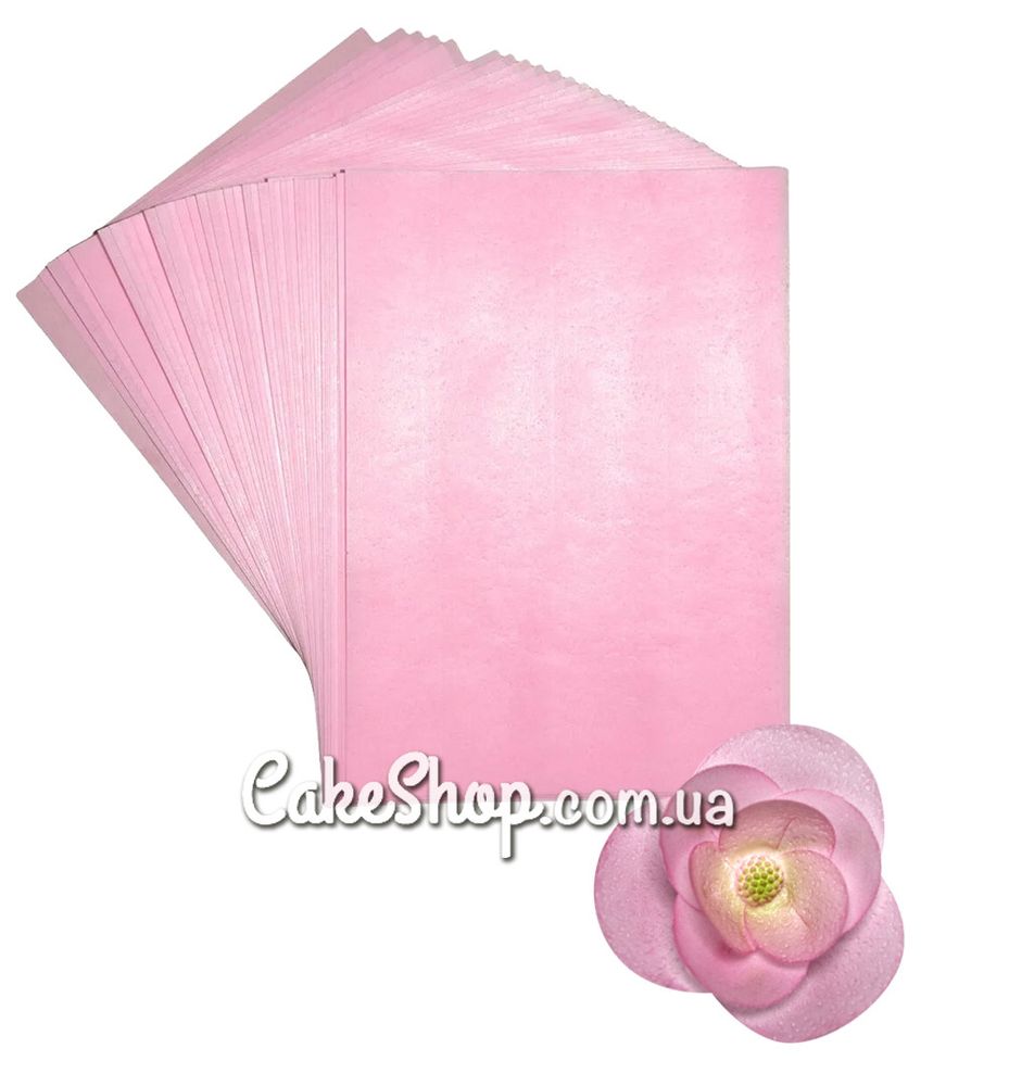 Ціна на Вафельний папір для квітів Рожевий, 1 лист дорівнює 16 грн.