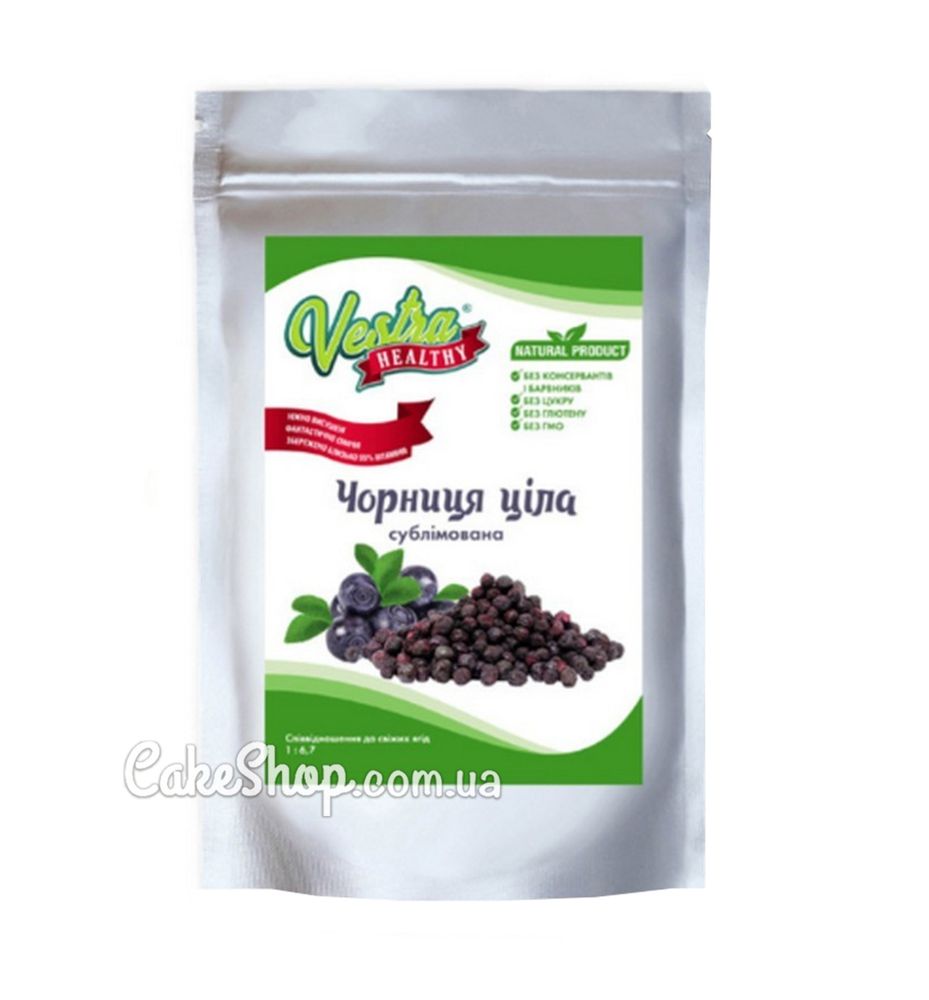 Ціна на Чорниця сублімована ціла Vestra 5-8 мм, 50 г дорівнює 245 грн.