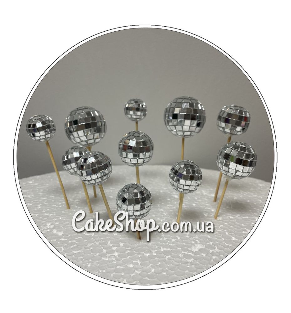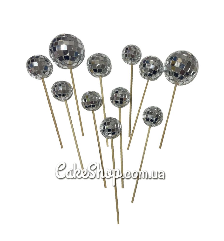 Ціна на Диско кулі сріблясті на шпажках, 11 шт дорівнює 280 грн.