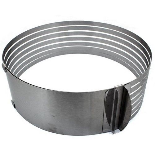 Роз'ємна металева форма — це незамінний інструмент для рівного та акуратного розрізання бісквітів на шари. Завдяки своїй конструкції вона дозволяє легко налаштовувати висоту та діаметр, що робить її універсальною для різних розмірів тортів.