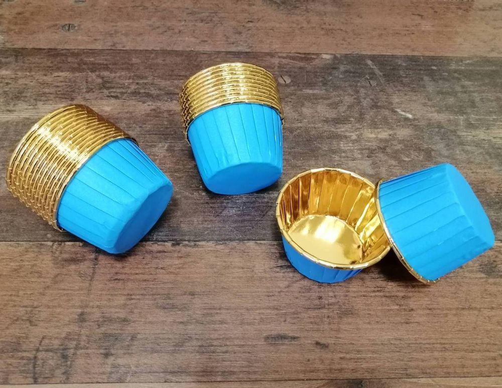 Форми металізовані з закрученими бортиком Блакитні/золото, 25 шт.
