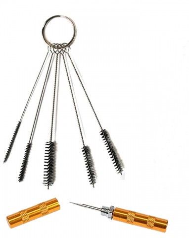 Інструмент для очищення аерографа що складається з п'яти йоржиків різного діаметру.