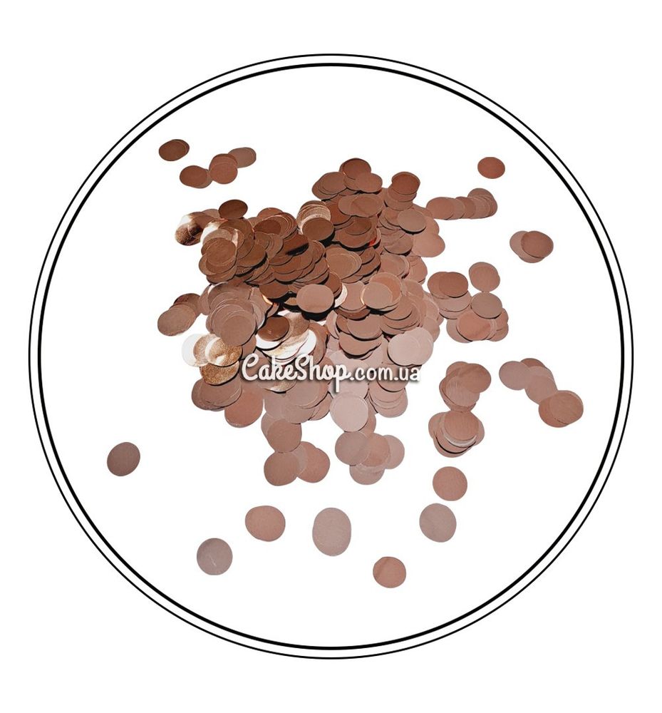 Ціна на Конфеті кружечки Рожеве золото 1,5 см, 25 гр дорівнює 50 грн.
