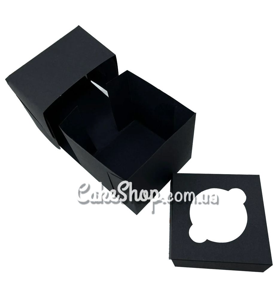 Коробка для 1 кексу з фігурним вікном Чорна, 10х10х9 см