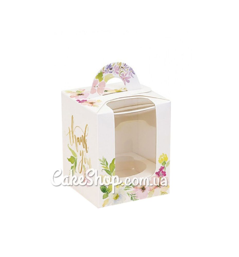 Коробка для 1 кексу з ручкою Квіти, 8,2х8,2х10 см