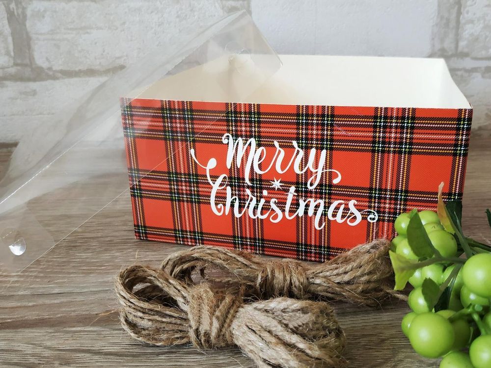 Коробка на 4 кекси з прозорою кришкою Merry Christmas, 16х16х8 см