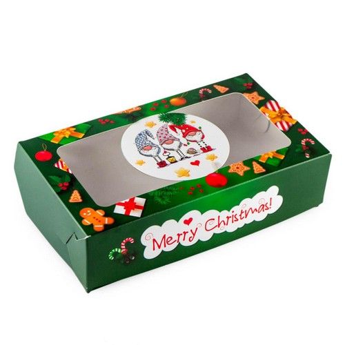 Ціна на Коробка для еклерів, зефіру з вікном Гномики зелена, 20х11,5х5 см дорівнює 18 грн.