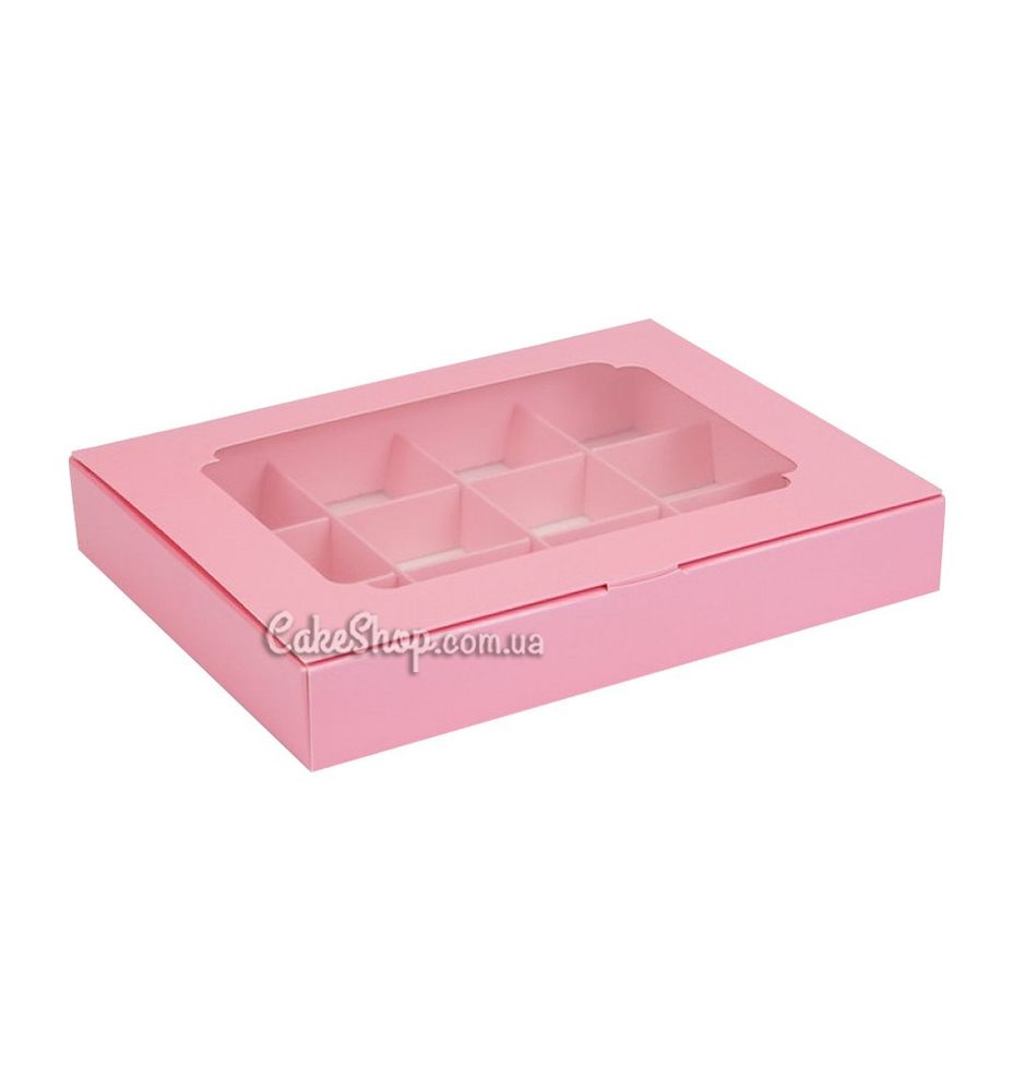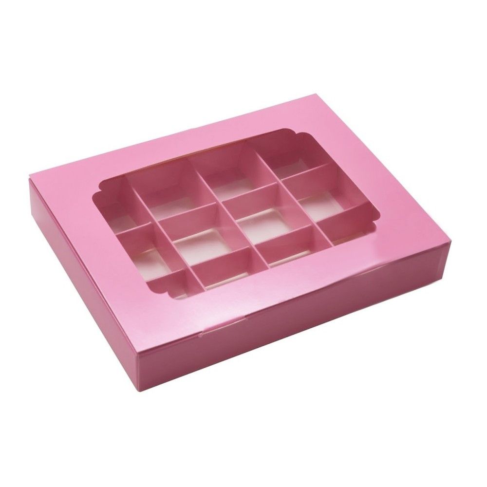 Коробка на 12 цукерок з вікном Рожева, 20х15,6х 3 см