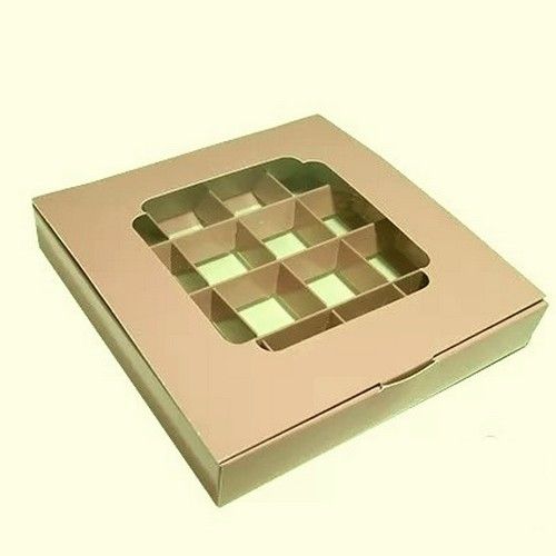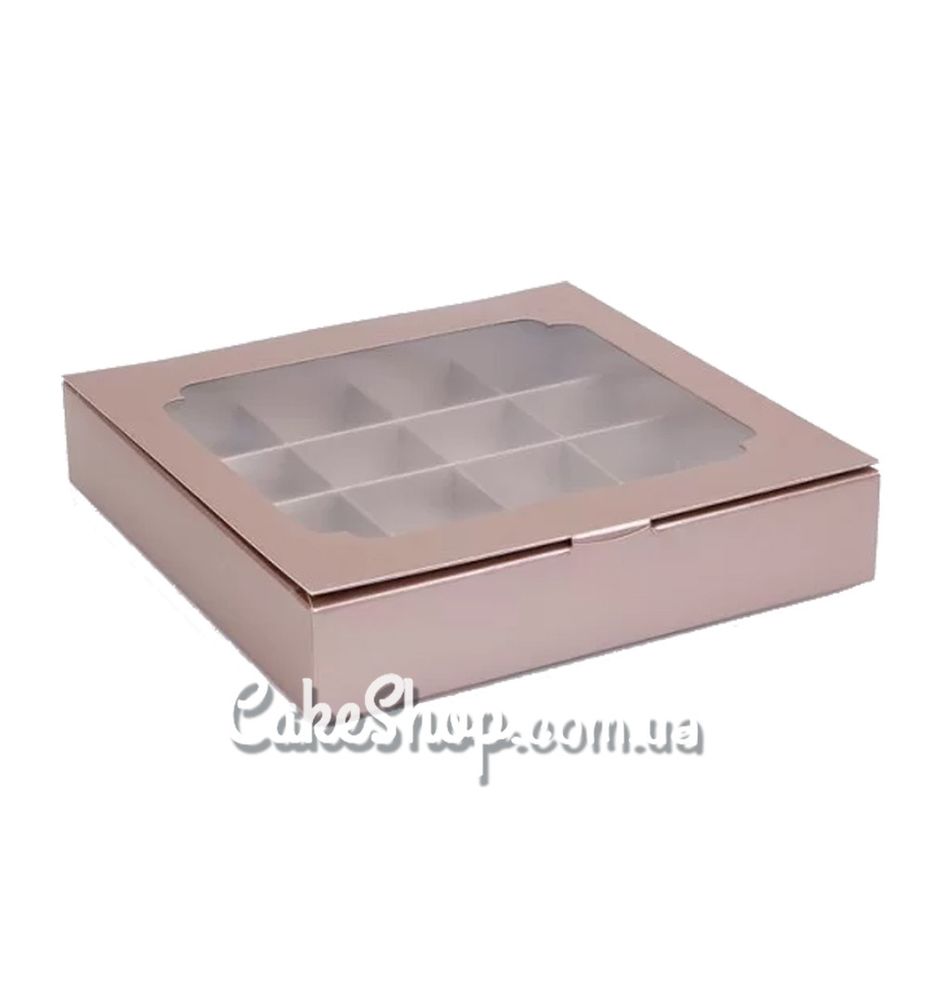 Ціна на Коробка на 16 цукерок з вікном Капучіно, 18,5х18,5 х 3 см дорівнює 28 грн.