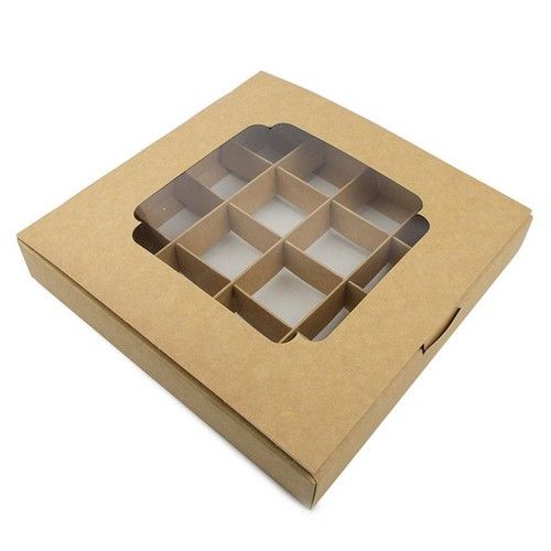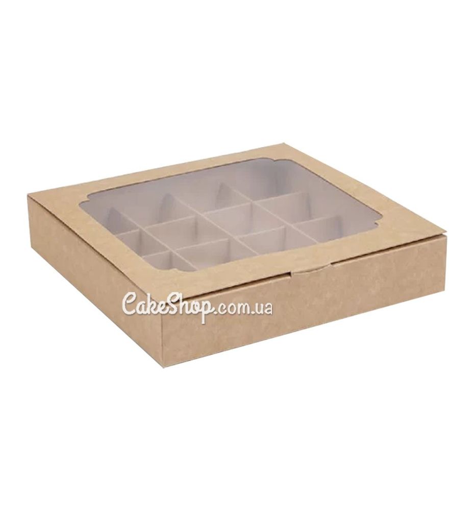 Ціна на Коробка на 16 цукерок з вікном Крафт, 18,5х18,5х3 см дорівнює 28 грн.