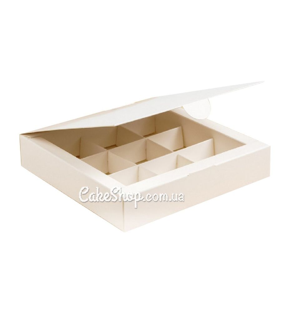 Ціна на Коробка на 9 цукерок без вікна Біла, 15х15х3 см дорівнює 20 грн.