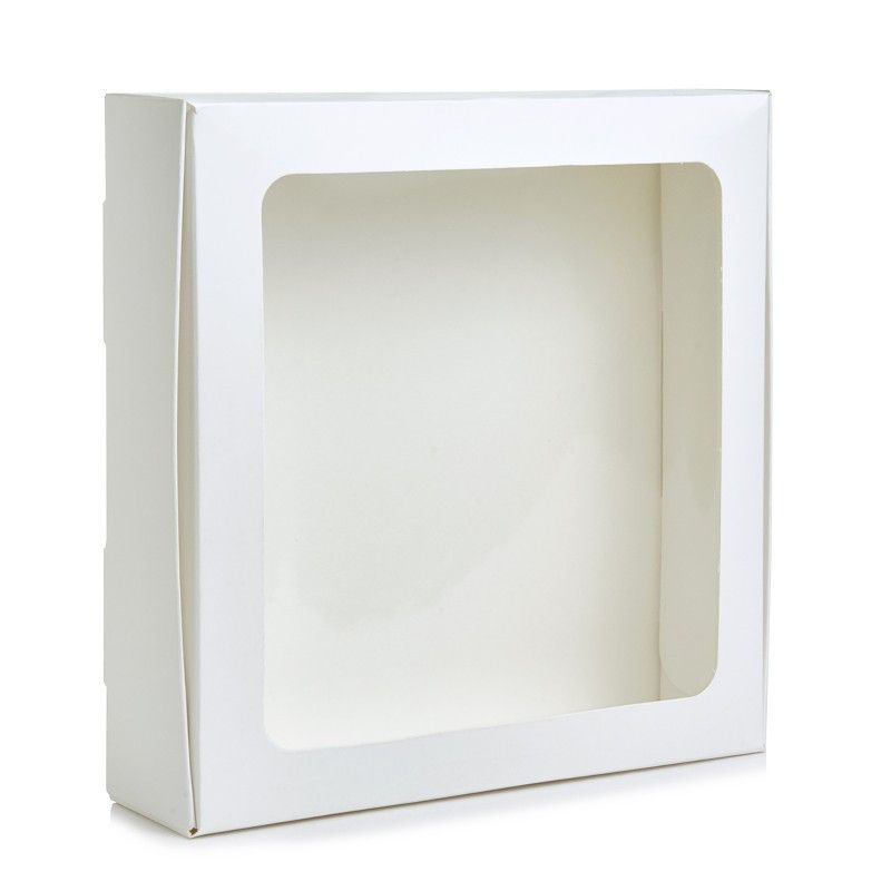 Ціна на Коробка для макаронс, еклерів, зефіру з вікном Біла, 20х20х5 см дорівнює 20 грн.