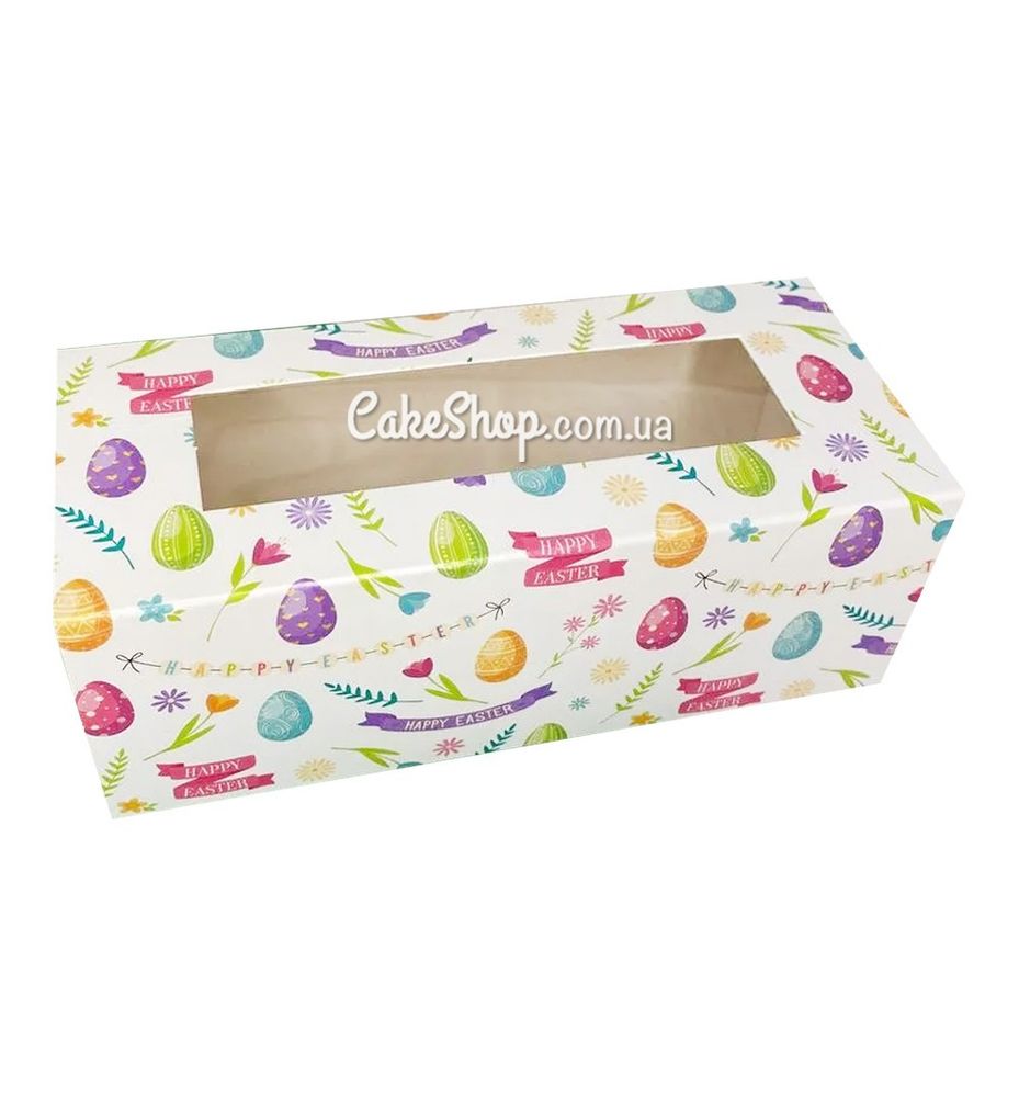 Ціна на Коробка для макаронс, цукерок, безе з прозорим вікном Пасхальна, 14х6х5 см дорівнює 15 грн.