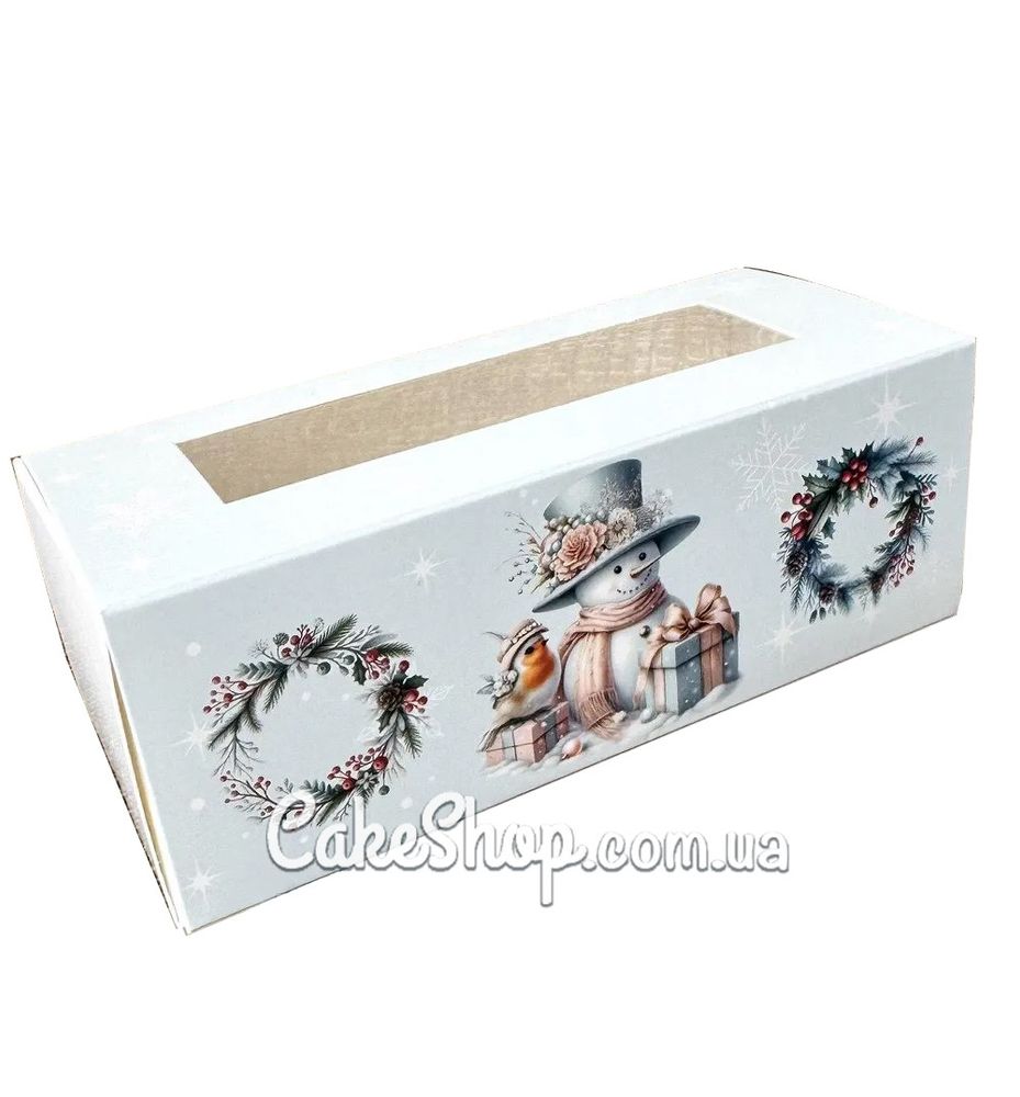 Коробка для макаронс, цукерок, безе з прозорим вікном Сніговики, 14х6х5см
