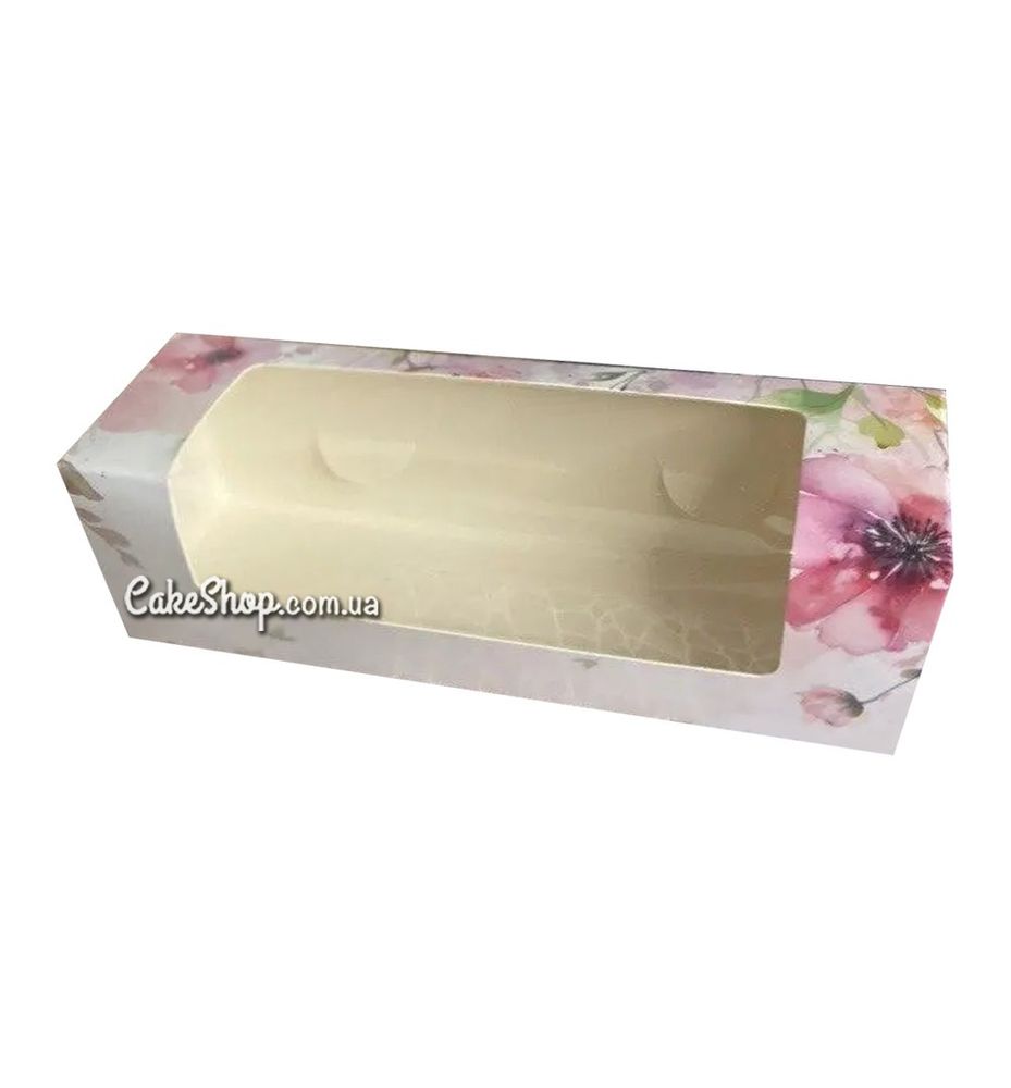Ціна на Коробка для макаронс з вікном Акварельні квіти, 20х6х6 см дорівнює 18 грн.