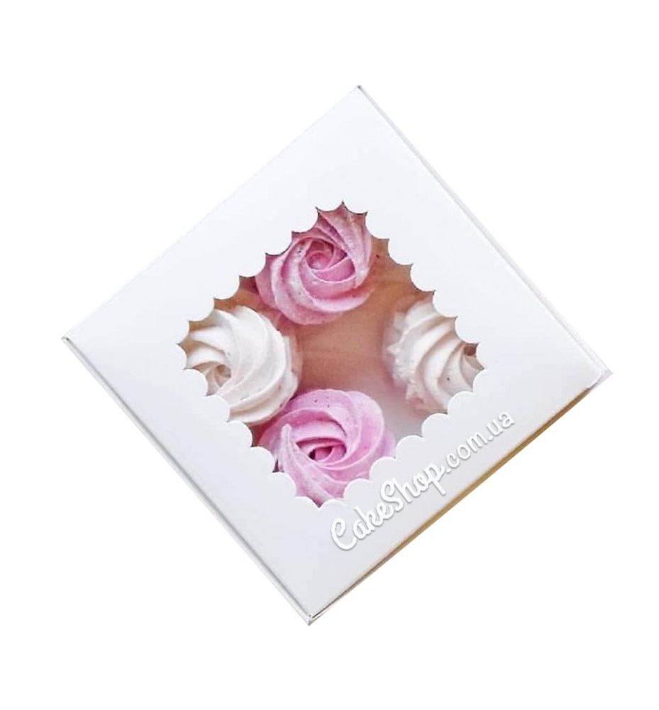 Коробка для пряників з вікном Ажурна біла, 15х15х5 см