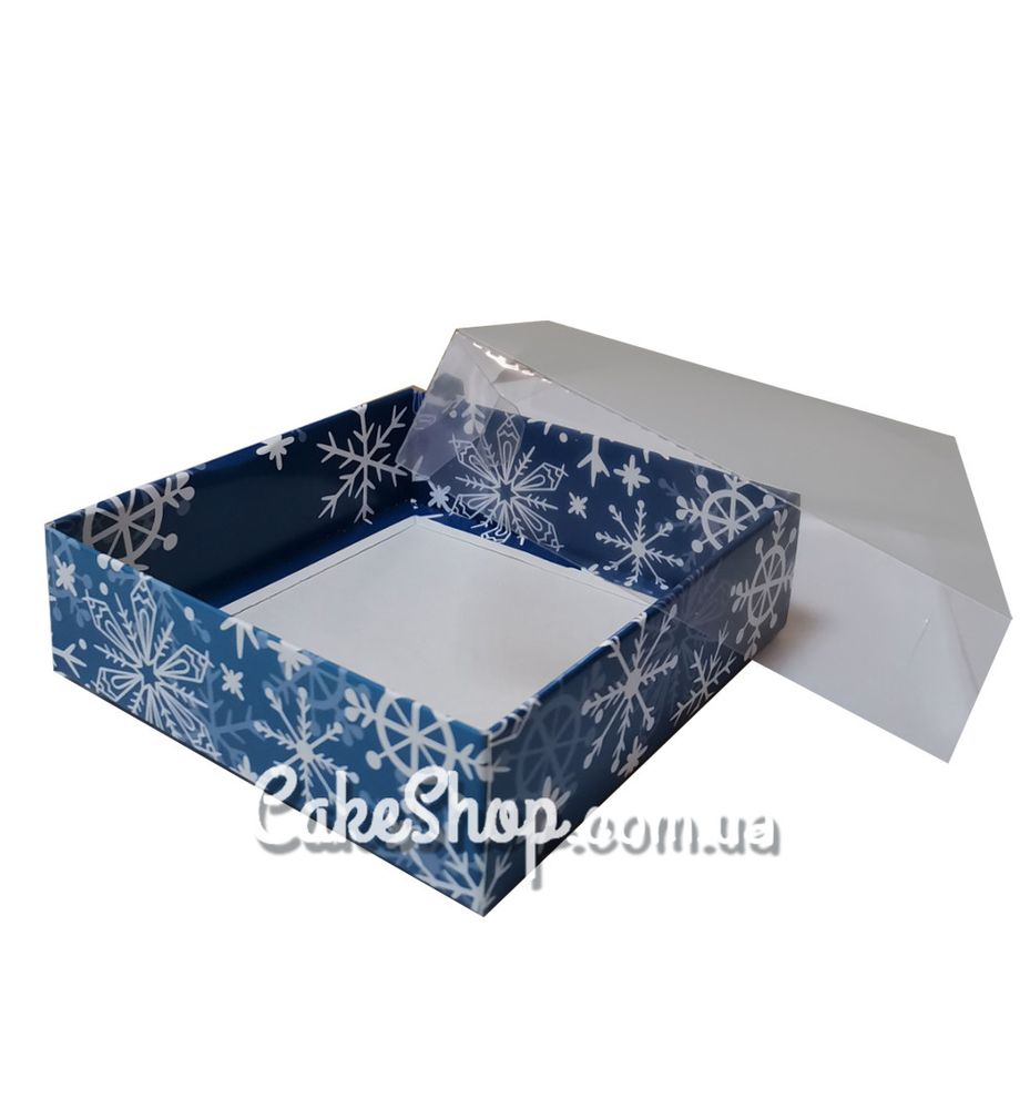 Ціна на Коробка для пряників з прозорою кришкою Крижинки, 12х12х3,5 см дорівнює 18 грн.