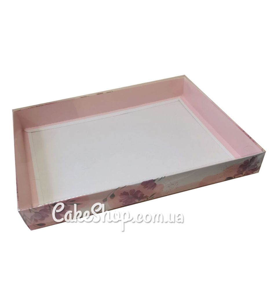 Ціна на Коробка з прозорою кришкою Рожева, 32х24х4 см дорівнює 32 грн.