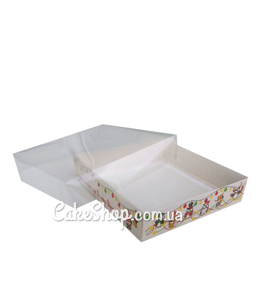 Ціна на Коробка для пряників з прозорою кришкою Сови, 16х16х3,5 см дорівнює 15 грн.