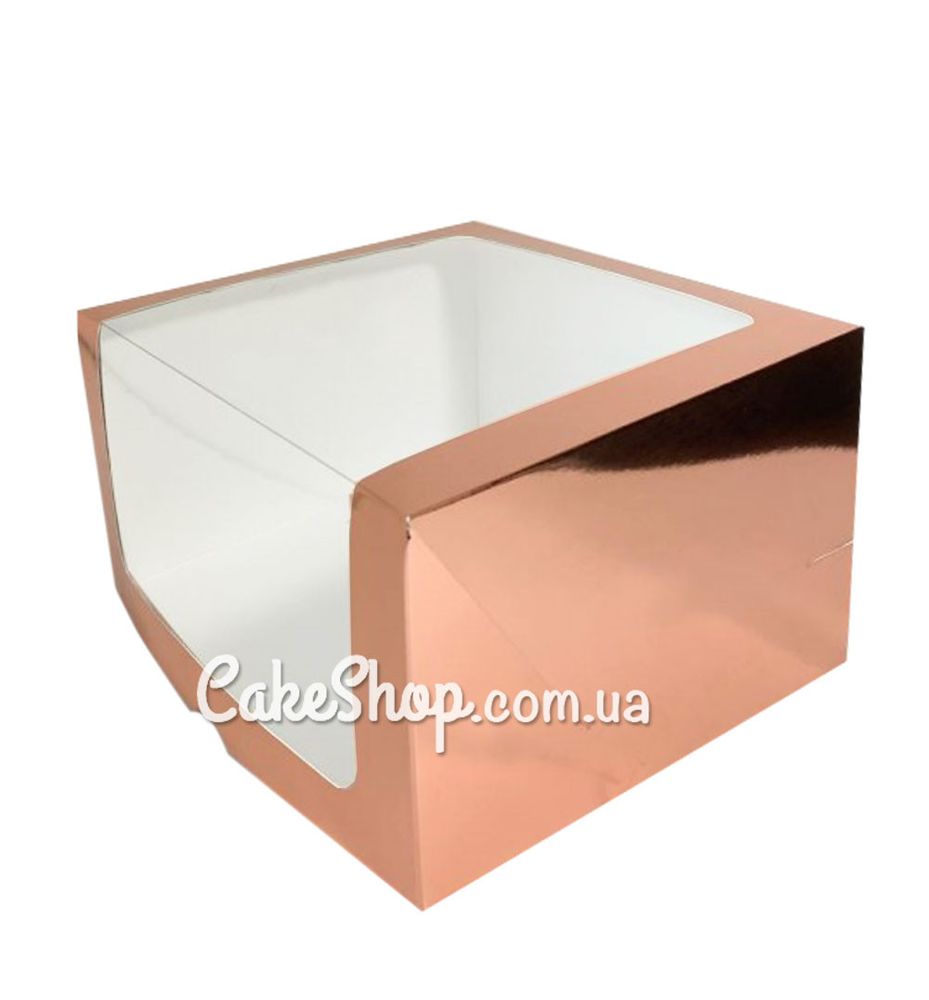Ціна на Коробка для торта Рожеве золото з вікном, 25х25х15см дорівнює 50 грн.