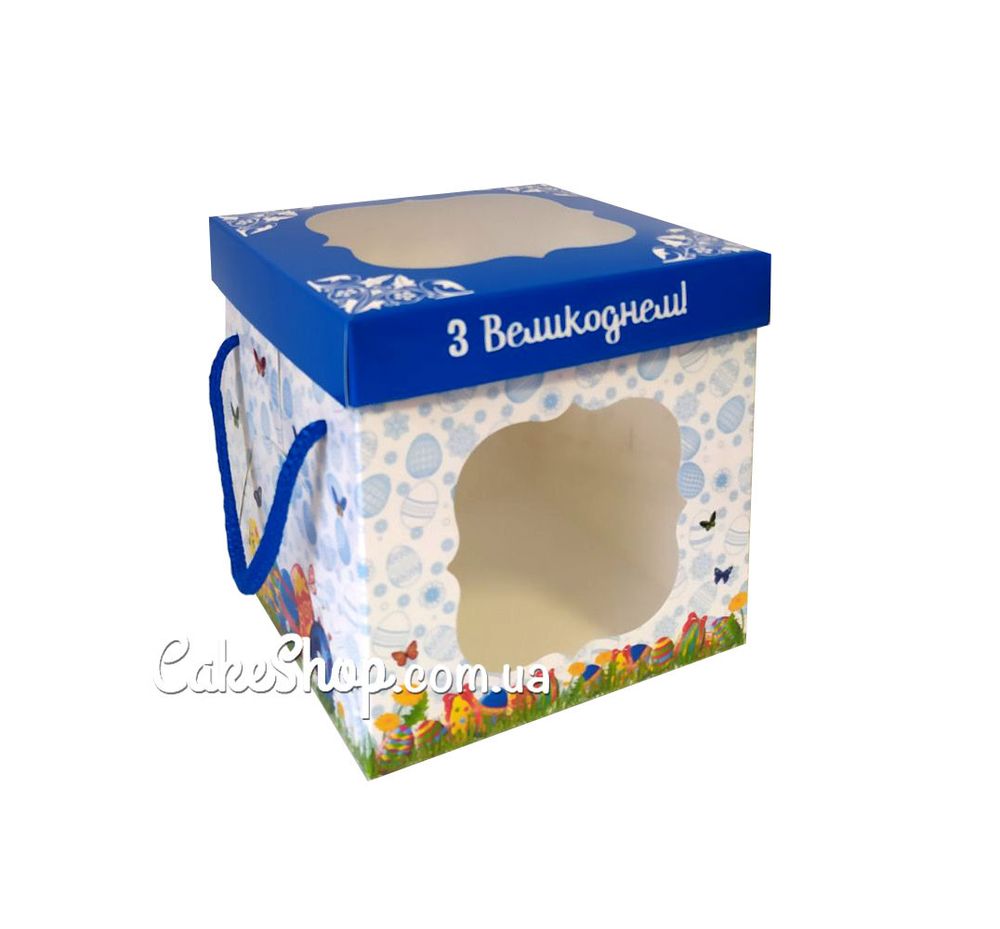 Коробка для торта З Великоднем з кришкою і вікном, 17х17х17 см