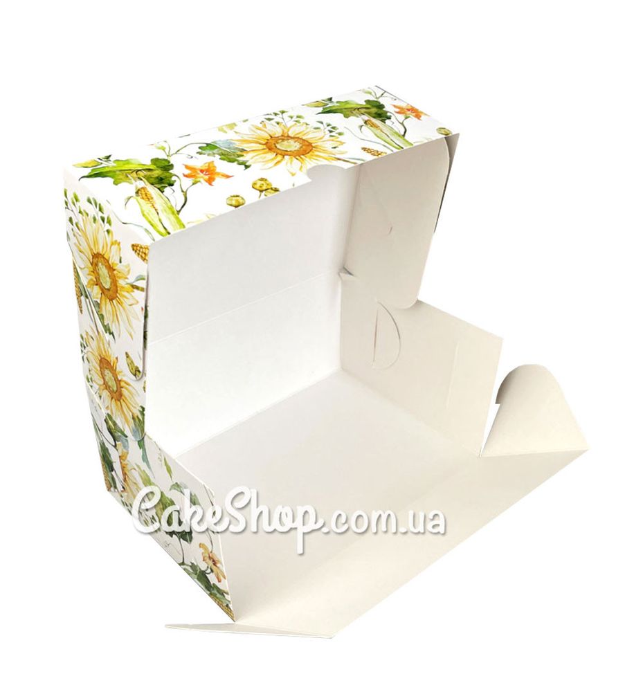 Ціна на Коробка-контейнер для десертів Соняхи, 18х12х8 см дорівнює 10 грн.
