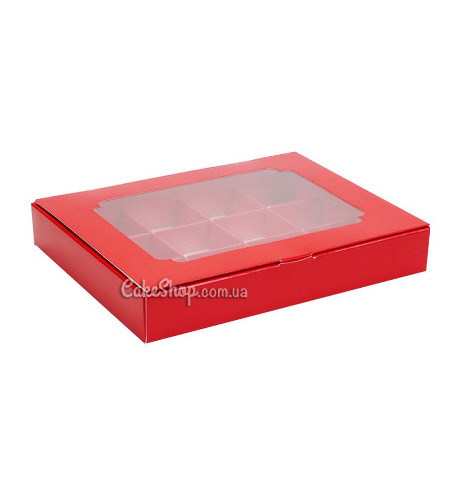 Ціна на Коробка на 12 цукерок з вікном Червона, 20х15,6х 3 см дорівнює 25 грн.