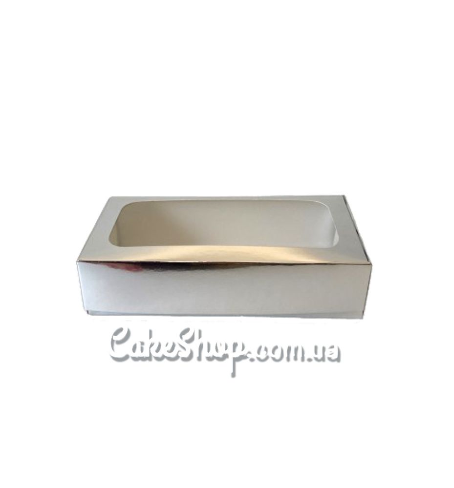Коробка на 12 макаронс з прозорим вікном Срібло, 20х10х5 см
