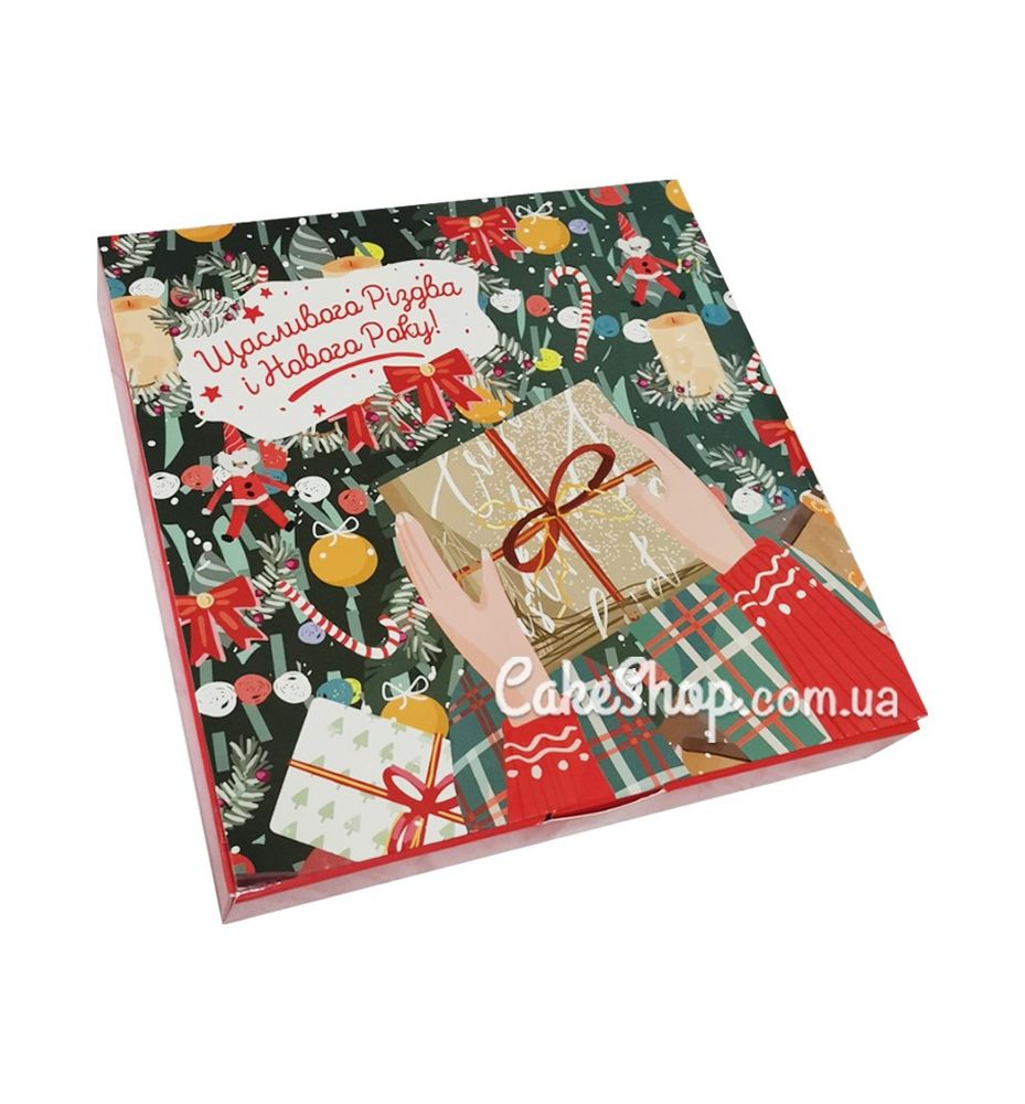 Коробка на 16 цукерок без вікна Подарунок під ялинку, 18,5х18,5х3 см